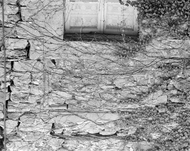 Elévation sud : détail de l'ancienne fenêtre moulurée à l'étage.Immatriculation