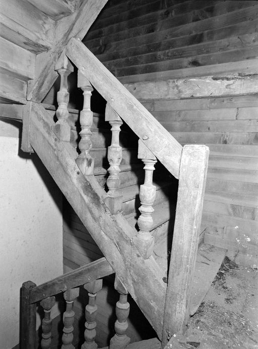 Escalier, détail d'une volée avec les balustres.Immatriculation