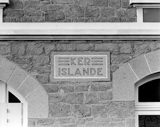 Saint-Malo. Immeuble Ker Islande, 27 avenue du 47 R.I., élévation sud : détail du cartouche en mosaïque portant l'appellation.Immatriculation