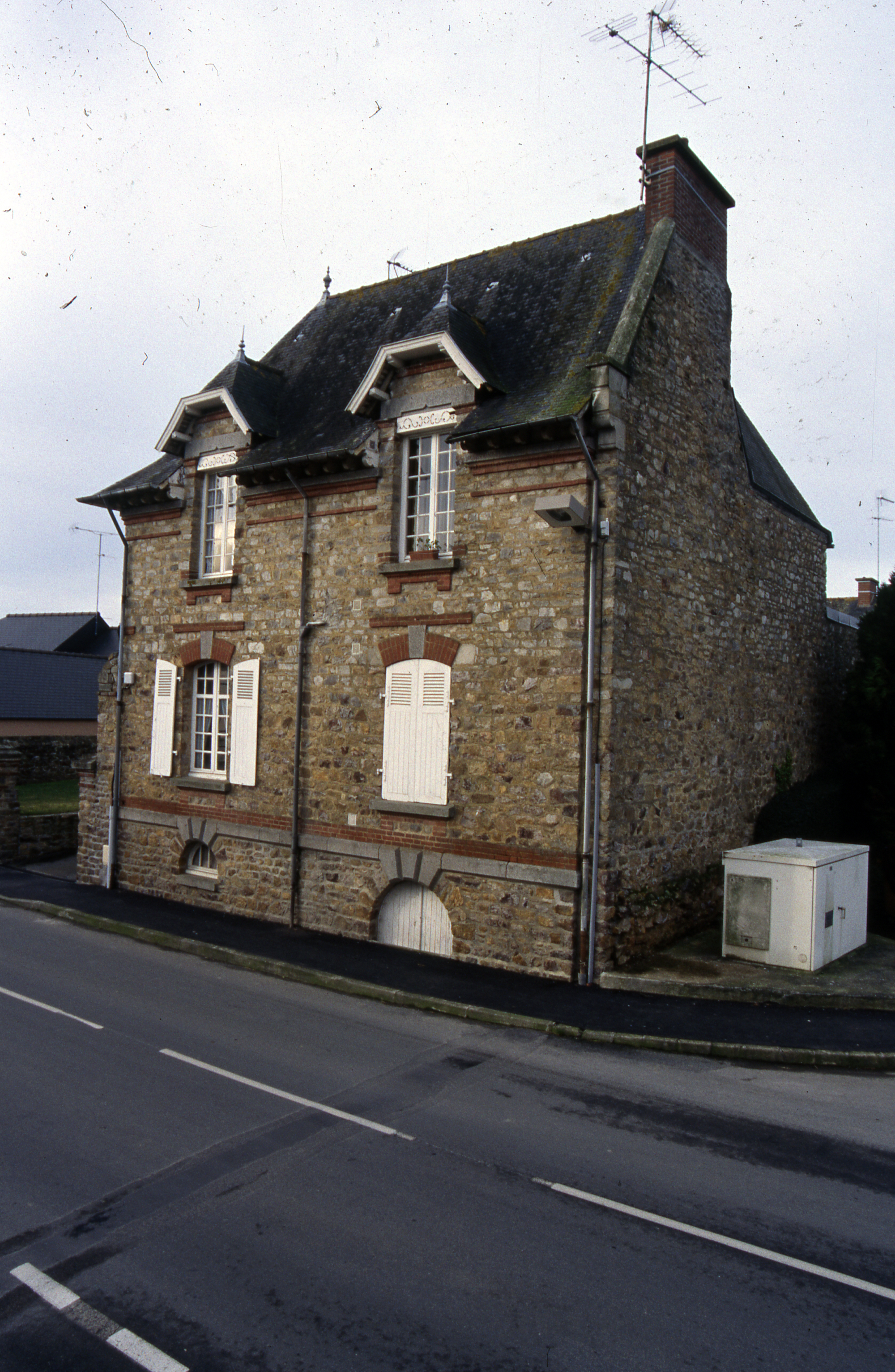 Vue générale, nord-est, maison de l'instituteur.Immatriculation