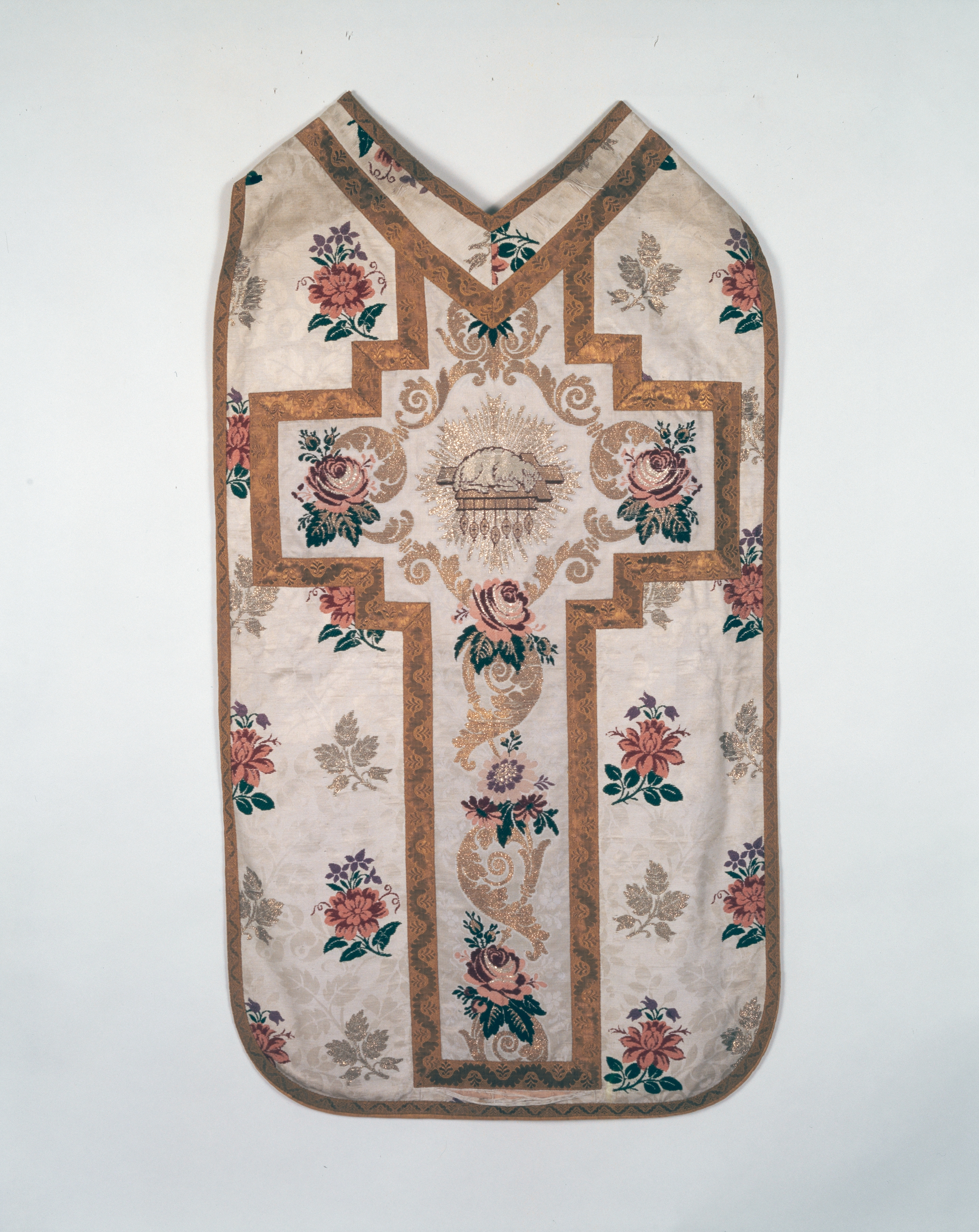 Ornement blanc 3 : chasuble, bourse de corporal, pale, basilique Notre-Dame-du-Roncier (Josselin),