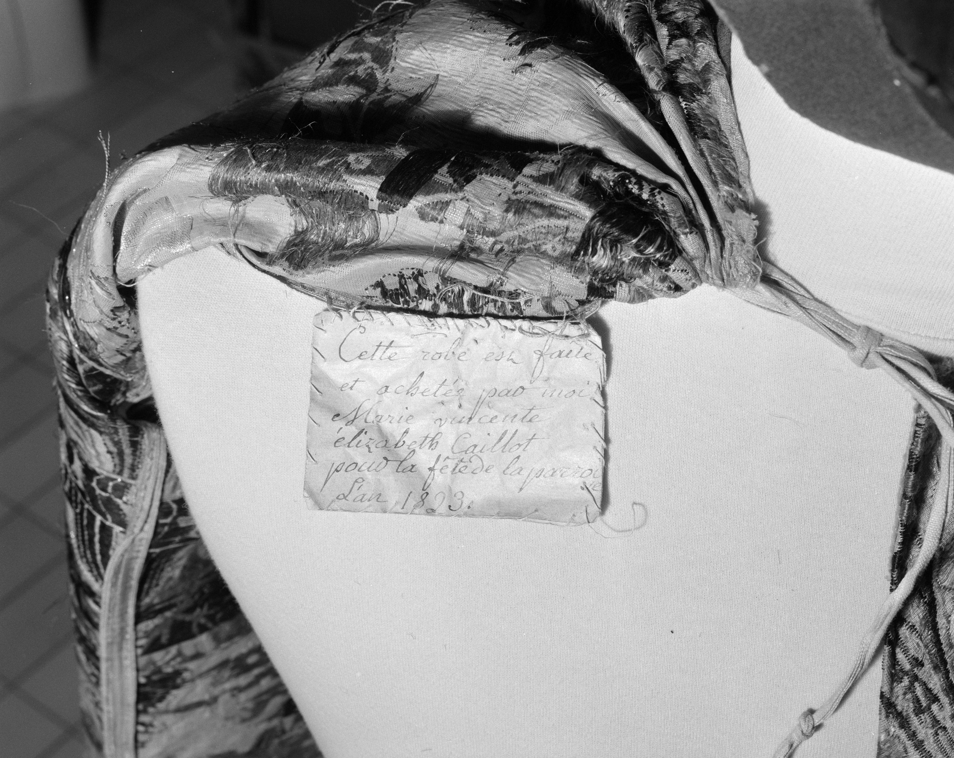 Costume de statue : inscription (état en 1995)Immatriculation
