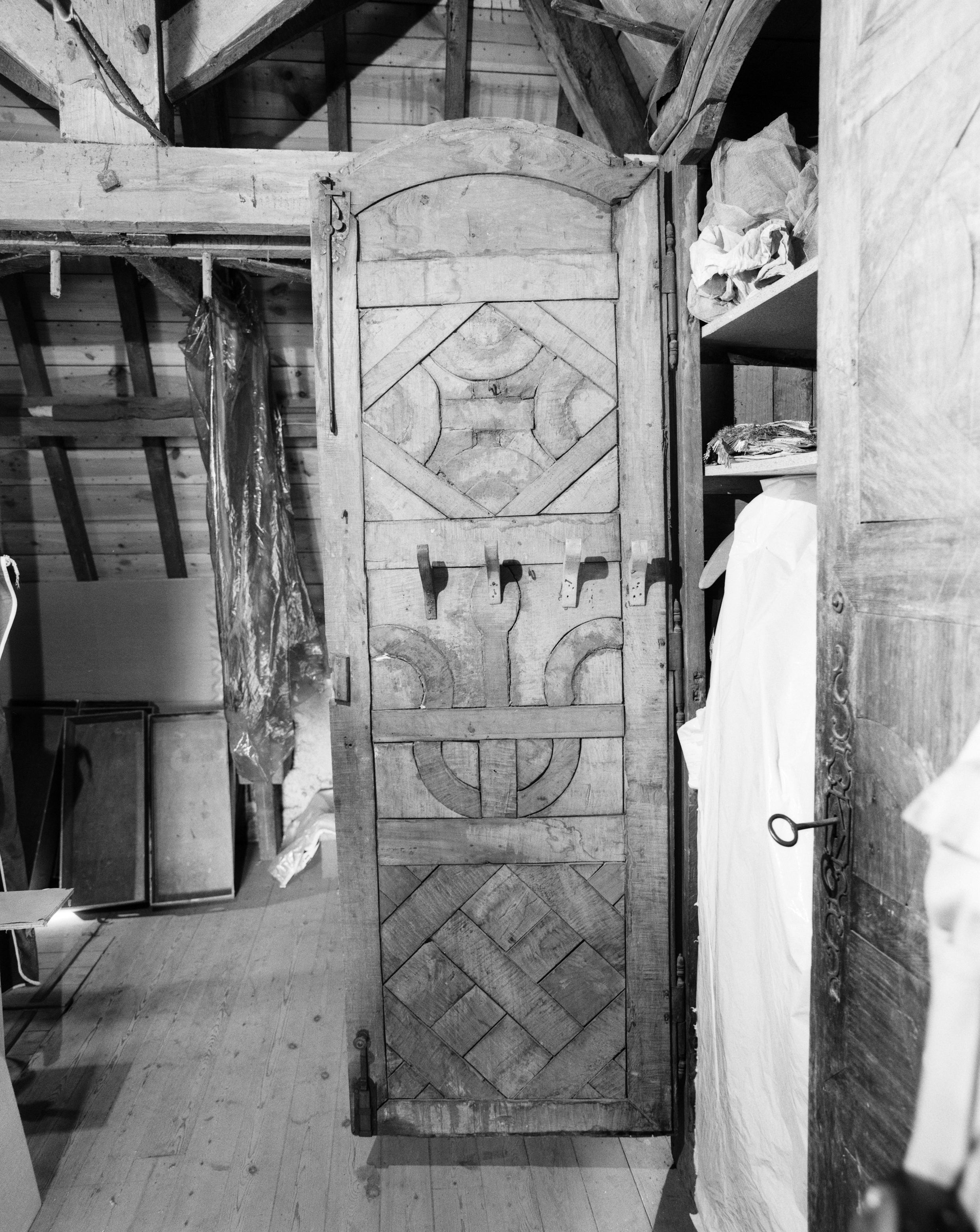 Armoire de sacristie : revers d'un battant (état en 1995)Immatriculation