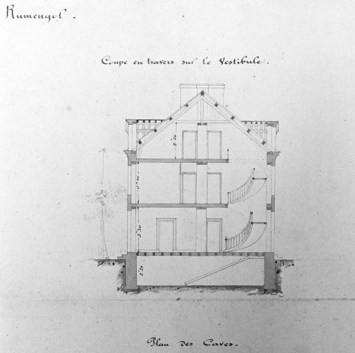 Second projet (non réalisé). Coupe transversale par Gustave Bigot, 1868 (A. E. Quimper)Immatriculation