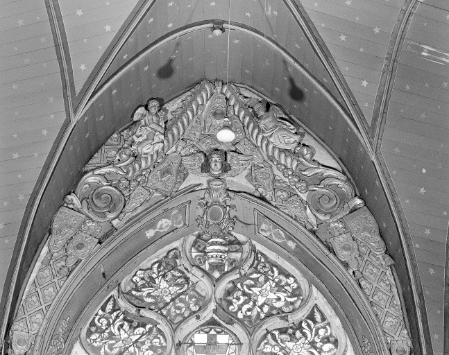 Retable : éléments sculptés au-dessus de la baie estImmatriculation