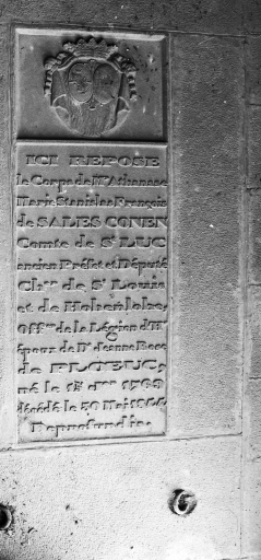 Pierre tombale d'Athanase Conen de Saint-Luc, mort en 1844Immatriculation