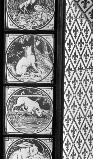 Détail du décor céramique n°6 de cheminée de la chambre 1, rez-de-chaussée.Immatriculation