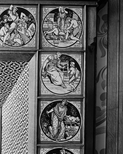 Détail mosaïque n°5 du décor de cheminée du bureau du directeur.Immatriculation