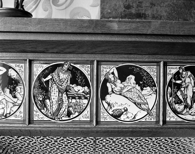 Détail mosaïque n°3 du décor de cheminée du bureau du directeur.Immatriculation