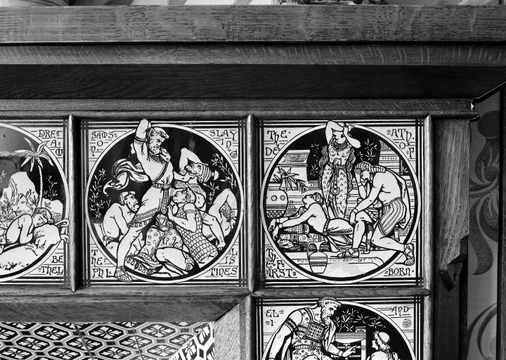 Détail mosaïque n°1, cheminée du bureau du directeur.Immatriculation