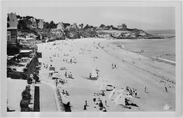 Carte postale ancienne - Dinard, Vue d'ensemble de la plage de Siant Enogat vers 1960.Immatriculation
