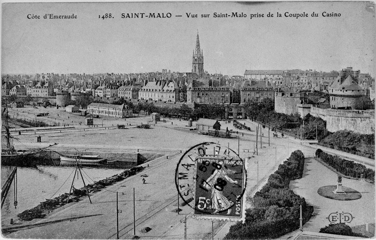 Carte postale début 20e siècle. Saint-Malo. Vue sur Saint-Malo prise de la coupole du casino.Immatriculation