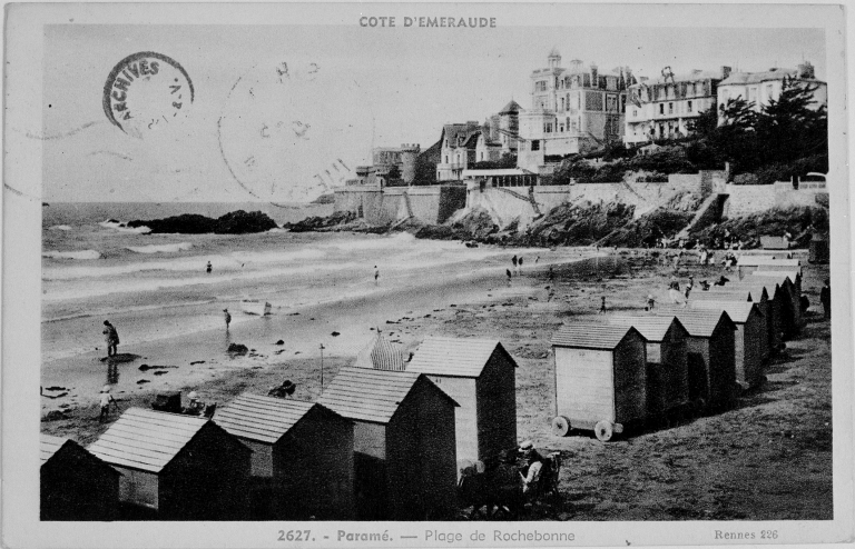 Carte postale ancienne, la plage de Rochebonne. Archives départementales d'Ille-et-Vilaine. 6Fi