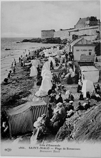 Carte postale début 20e siècle. Saint-Malo, plage de Bon-Secours.Immatriculation