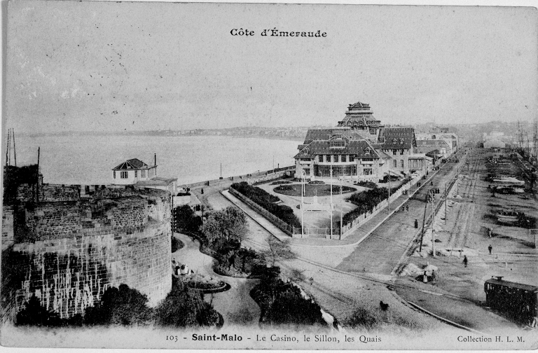Carte postale début 20e siècle. Saint-Malo, le casino, le Sillon, les quais.Immatriculation