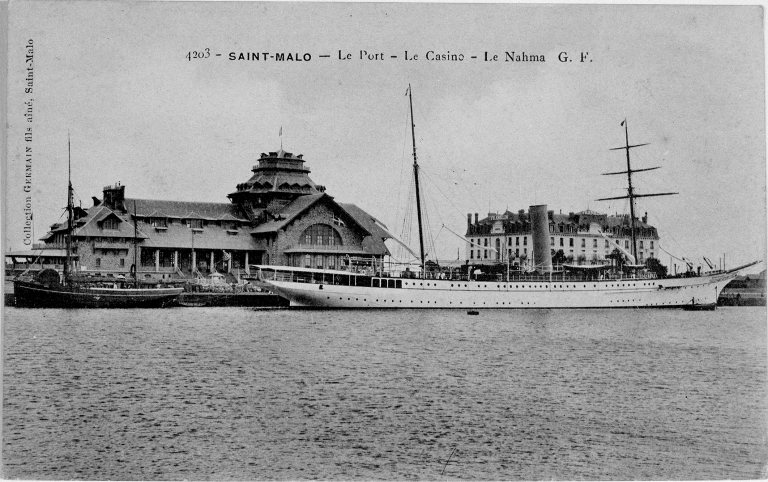 Carte postale début 20e siècle. Saint-Malo, le port, le casino, le Nahma.Immatriculation