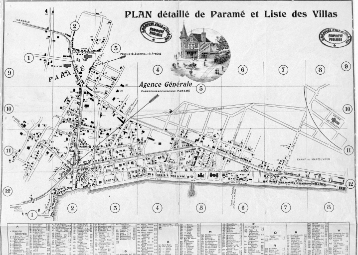 Plan détaillé de Paramé et liste des villas, pour l'Agence Générale, s.d.Immatriculation