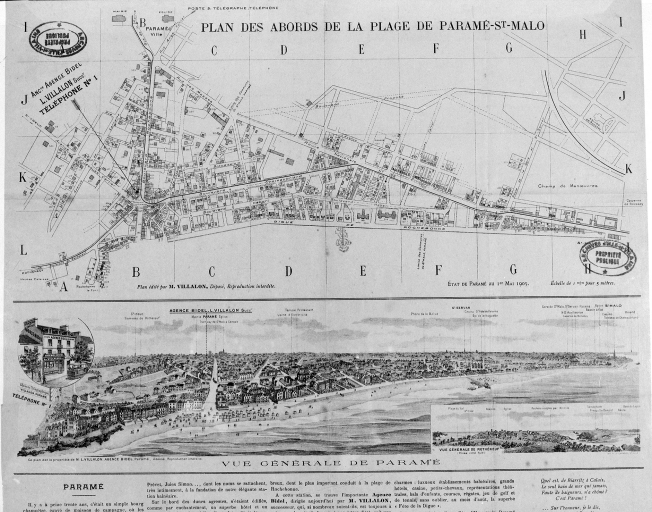 Plan général des abords de la plage de Saint-Malo-Paramé, pour l'Agence Villalon, 1905.Immatriculation