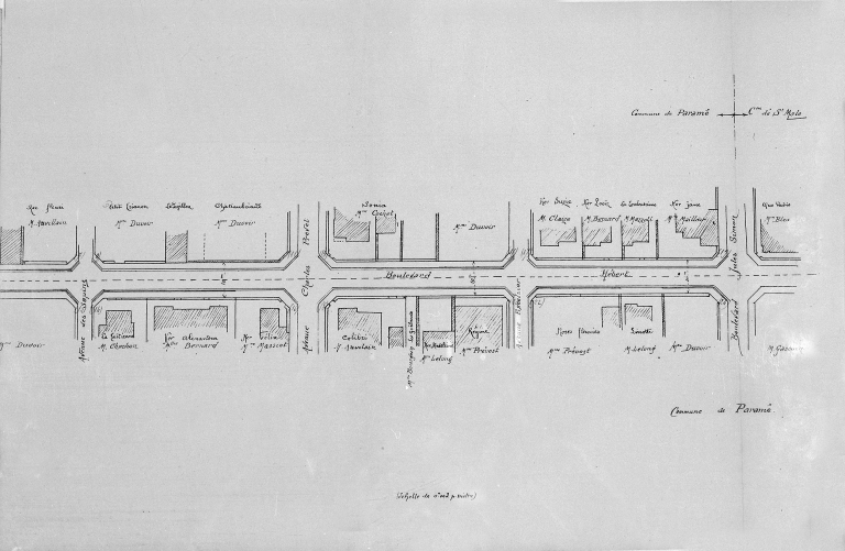 Plan pour l'amélioration du boulevard Hébert, 1912, plan du parcellaire et d'alignement (partie ouest du boulevard).Immatriculation