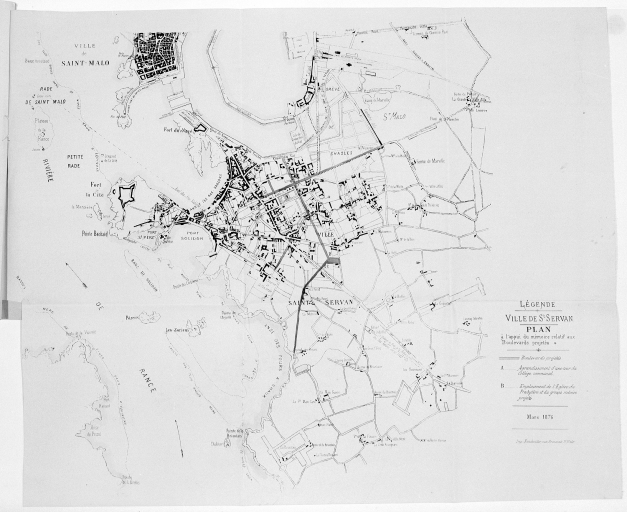 Plan à l'appui du mémoire relatif aux boulevards projetés, 1876. Archives départementales d'Ille-et-Vilaine. Série O Voirie Urbaine