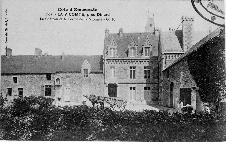 Carte postale ancienne. Collection G.F - La Vicomté, près Dinard Le château et la ferme de La Vicomté.Immatriculation