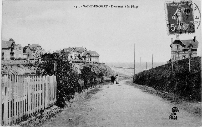 Carte postale ancienne - Collection HLM - 1430. Saint-Énogat - Descente à la plage.Immatriculation