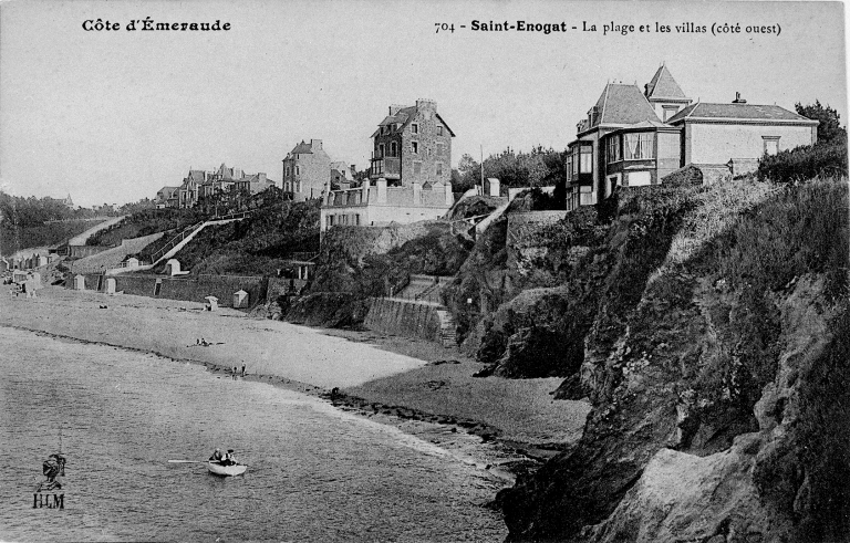 Carte postale ancienne - Collection HLM - 704. Saint-Énogat - La plage et les villas (côté ouest).Immatriculation
