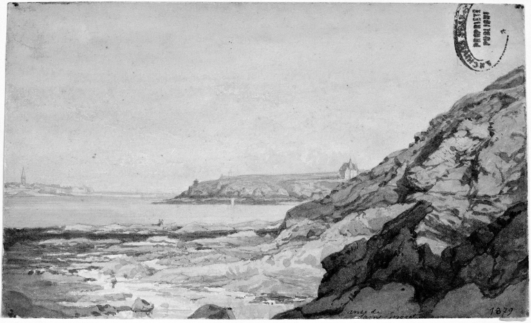 Anse de Saint Enogat, dessin aquarelle.Immatriculation