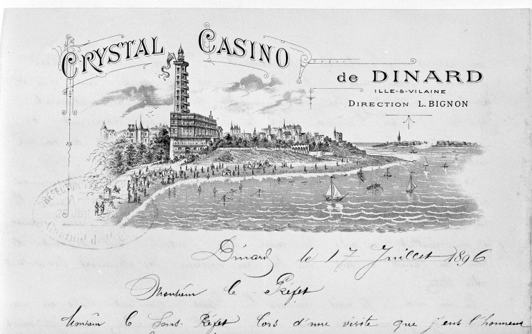 Crystal Casino de Dinard, Ille-et-Vilaine, direction. L. Bignon, entête de papier à lettre, le 1er juillet 1896.Immatriculation