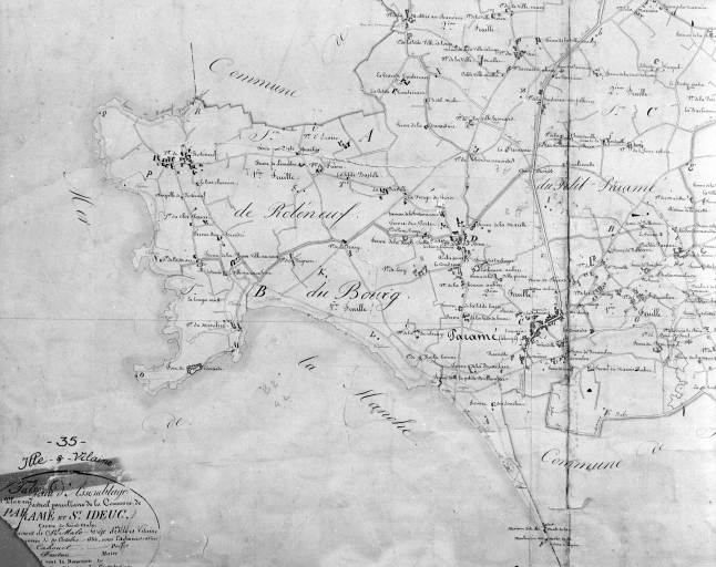 Extrait du tableau d'assemblage du cadastre napoléonien, commune de Paramé-Saint-Ideuc, 1836.Immatriculation