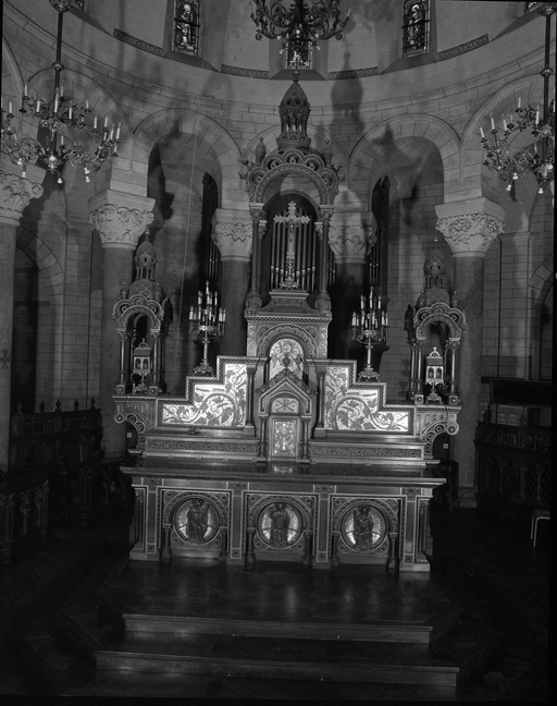 Autel, tabernacle, exposition (maître-autel, tabernacle à dais d'exposition), style néo-roman, église paroissiale Saint-Etienne (Val-d'Izé),