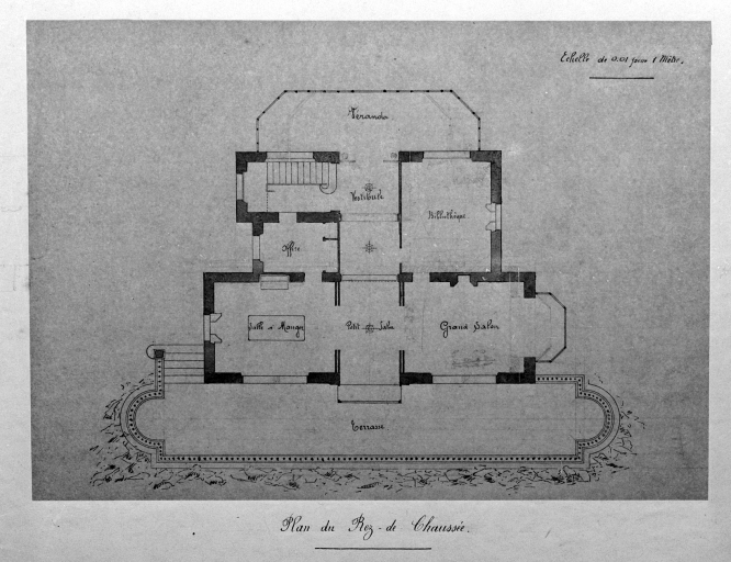 Plan du rez-de-chausée, vue générale.Immatriculation