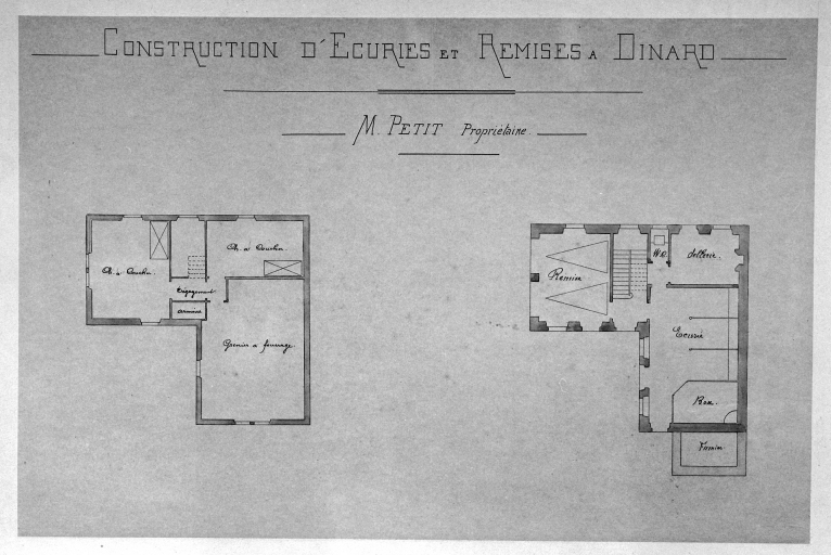 Projet de construction d'écuries et de remises à Dinard pour M. Petit propriétaire, décembre 1889, rez-de-chaussée et étage en surcroît.Immatriculation