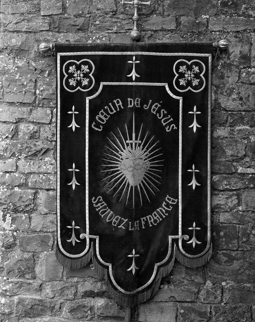 Bannière de procession : Sacré Coeur, Saint Martin partage son manteau, de paroisse, église paroissiale Saint-Martin (Balazé),