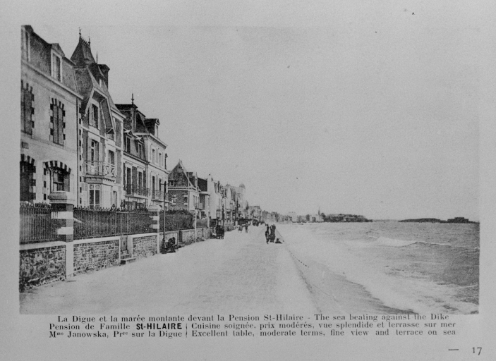 La digue et la marée montante devant la pension Saint-Hilaire.Immatriculation