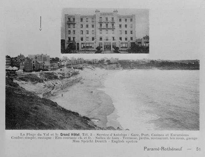 Plage du Val et le Grand Hôtel, illustration de guide touristique, 1920 (AP.).Immatriculation