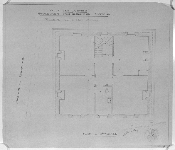 Villa Les Cygnes, relevé de l'état actuel, plan du 2ème étage, par Morcrette architecte, 1928.Immatriculation