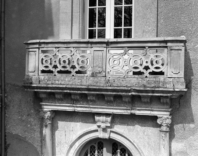 Elévation principale : détail du balcon.Immatriculation