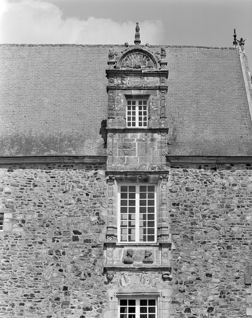 Elévation principale : aile nord, détail de la lucarne.Immatriculation