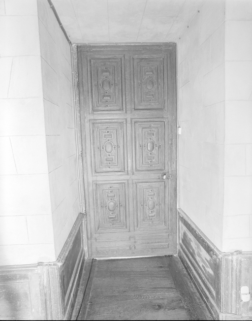 Vue de détail de la porte du couloir.Immatriculation