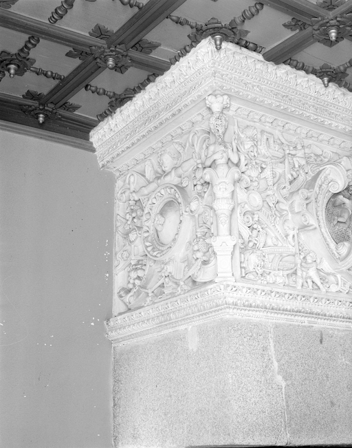 Salle à l'étage : détail de la cheminée.Immatriculation