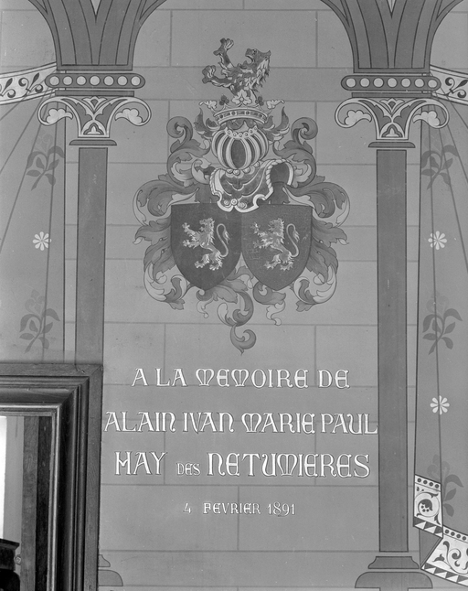 Chapelle : intérieur, détail armoiries.Immatriculation