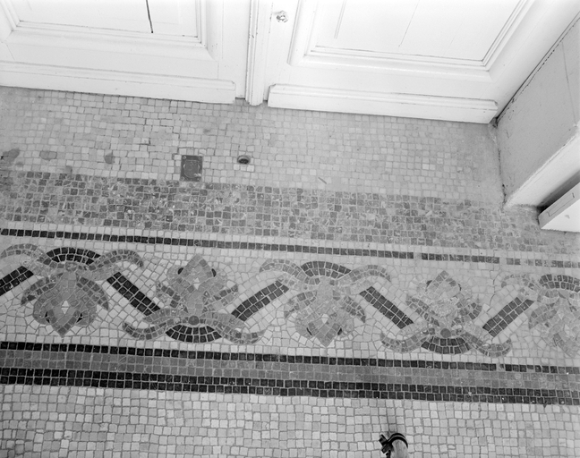 Jardin d'hiver : décor de mosaïque, détail de la bordure.Immatriculation