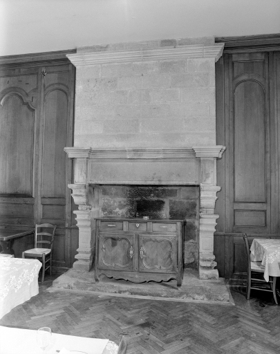 Vue générale de la cheminée, salle n°3, rez-de-chaussée.Immatriculation