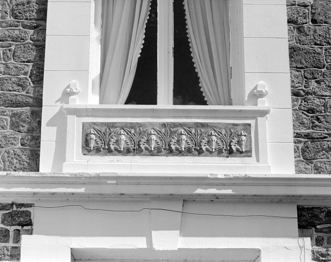 Détail céramique (façade sur rue) appui de fenêtre de 1er étage.Immatriculation