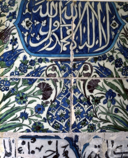 Détail céramique à l'intérieur de l'orangerie.Immatriculation