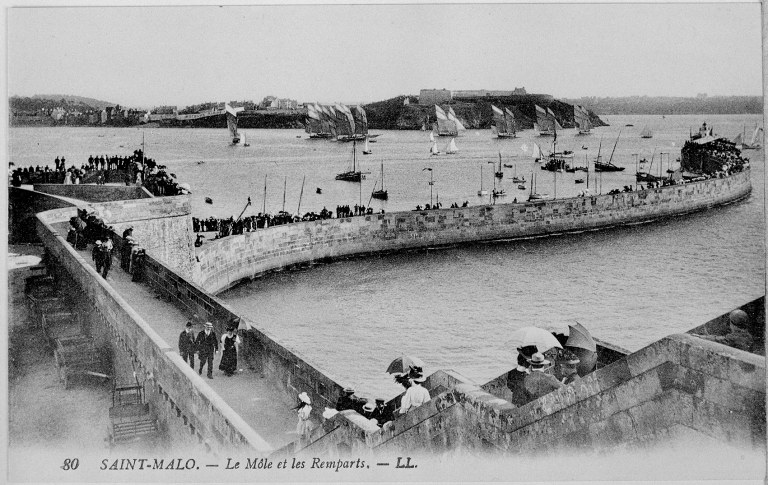 Carte postale début 20e siècle. Saint-Malo, le môle et les remparts.Immatriculation