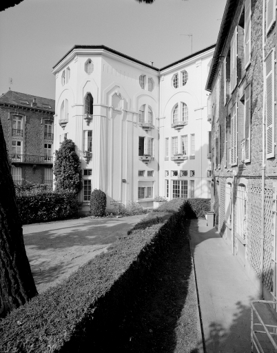 Vue de 3/4 de la façade nord-est sur le boulevard Féart.Immatriculation