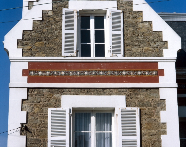 Paramé. Villa, 9 avenue du Président John Kennedy, élévation est : détail de la frise en céramique.Immatriculation