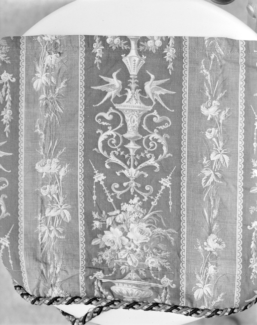 Chambre nord-ouest, détail du tissu d'origine rouge et vert.Immatriculation